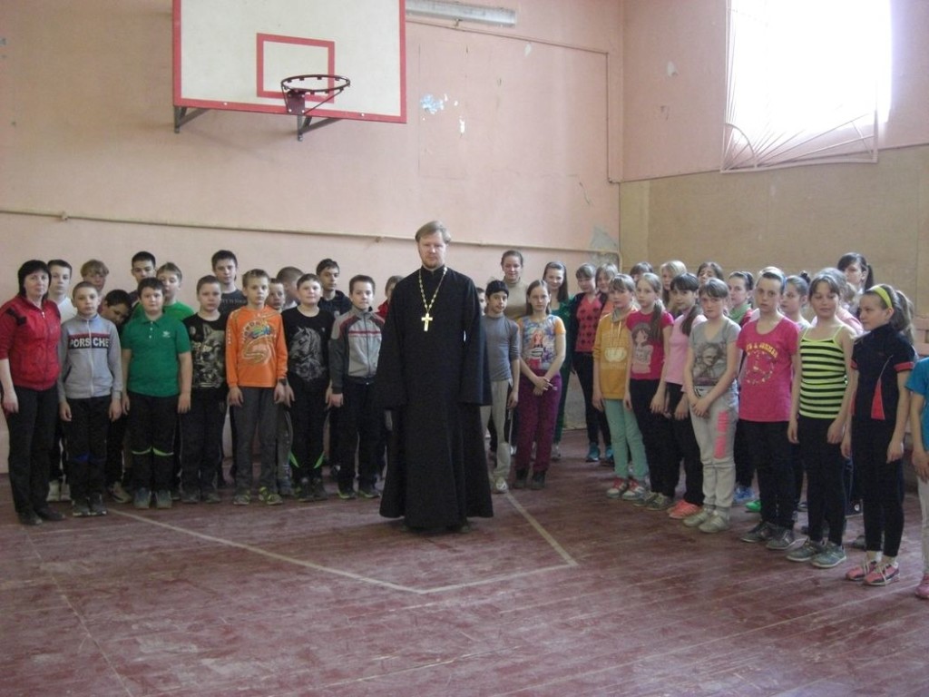Отец Роман рассказал ученикам 4,5,6-х классов о празднике Пасхи, поздравил учителей и учеников с Воскресением Христовым.